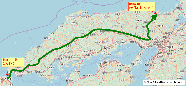 去年に続いて今年も同じ時期に北海道へ。今日は金曜日だが去年同様、午前中で仕事を切り上げて今から舞鶴へ高速で移動する。舞鶴から小樽行きのフェリーは23時50分に出航。北九州から舞鶴までの距離は620キロ。