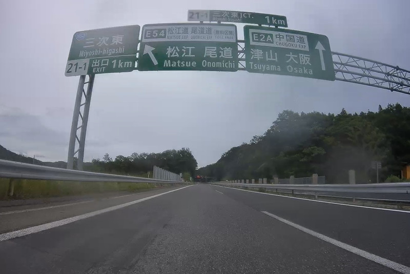 安佐サービスエリアを過ぎた頃からかクルマが増えてきた。案内板に浜田や松江などの山陰の都市と大阪が並ぶのも若干違和感がある。位置的には全然違うからね。 |