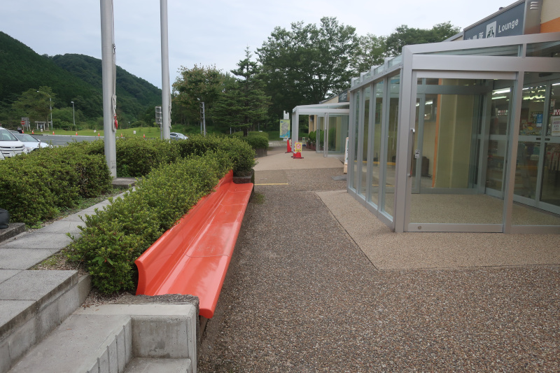 外にある長めのベンチ。昔、夜間走行でヘトヘトになってベンチで寝たことがあったな。この時期の夜間は虫が多そうでちょっと厳しそうだが。 |