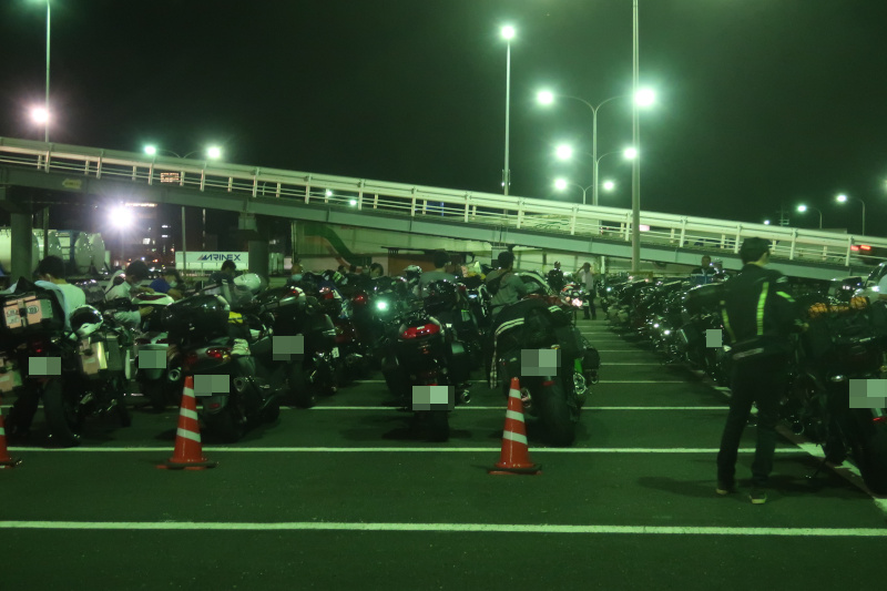 バイクが続々とやってくる。当然ながら関西圏のナンバーばかり。関西圏なら仕事帰りにもここに来られるからね。福岡や鹿児島のナンバーもいたが、ボクと同じように今日一気に移動してきたのだろうか。 |