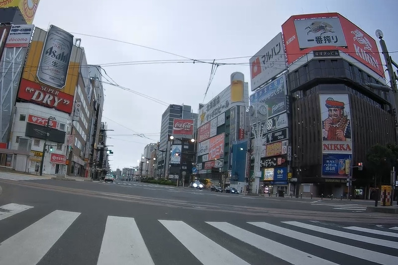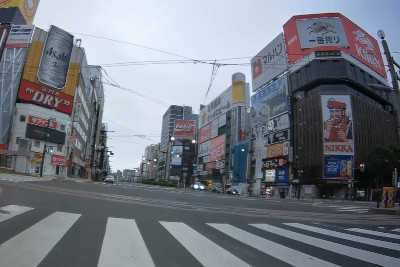 すすきの交差点へ。ニッカウヰスキーの看板が有名な交差点で札幌市の顔の1つだ。