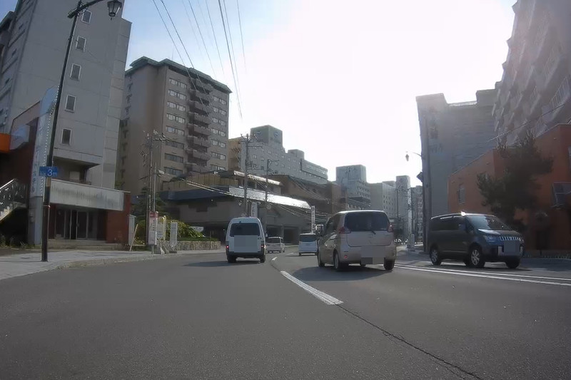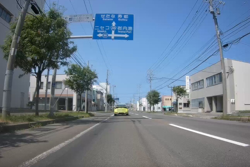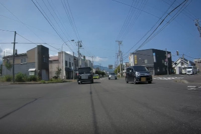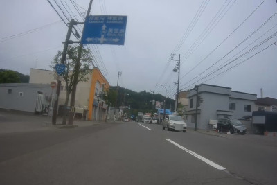 余市町市街地を走る。左折すると国道5号で函館方面に行くが、このまま真っ直ぐで積丹(しゃこたん)方面へ。