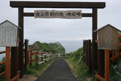 先に進むと「女人禁制の地 神威岬」の鳥居が出てきた。女人禁制という場所は現在もよく聞く。沖ノ島(福岡県宗像市)なんか最近世界遺産に登録されたので印象に強い。