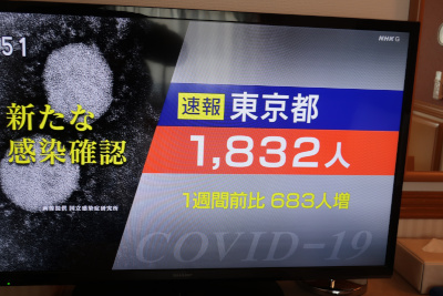 天気予報確認の為にテレビを点けるとコロナの感染者数の速報が。