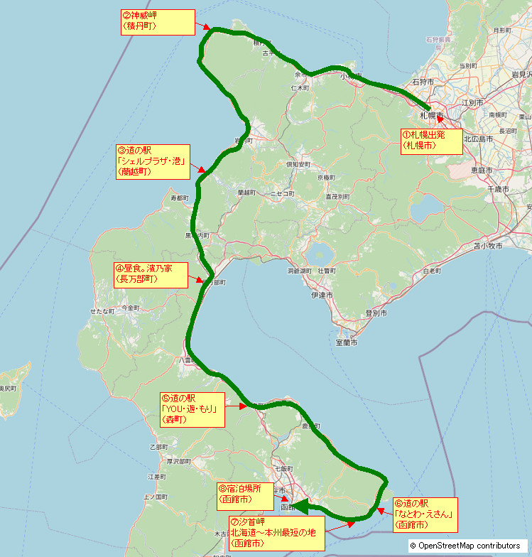SV650で北海道ツーリングに行ってきました(札幌~神威岬~積丹半島~長万部~渡島半島(右)~函館)