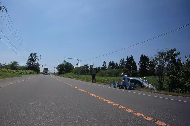 さて、再び函館に向かって走ろう。食事の後、長万部を出発してすぐに事故現場を目撃。反対車線のクルマが畑に落ち込んで救急隊員が救助していたようだが、北海道は速度超過が多くて事故が多いから気を付けないと。