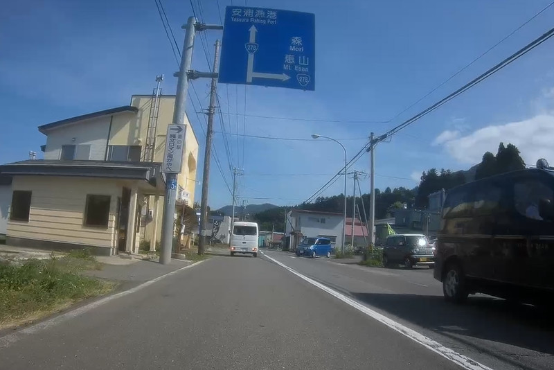 真っ直ぐは安浦漁港、右折すると恵山、森。ナビは真っ直ぐを示しているのでそのまま直進しよう。