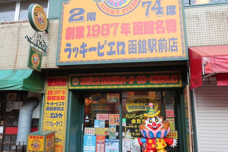 そのすぐ近くにある函館名物ラッキーピエロ!ここは地産地消のハンバーガーチェーンとして有名で函館にしか店舗がないらしい。