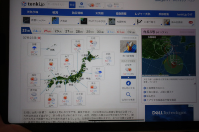 出発前に天気だけ確認しておこう。今日の東北は曇りがちで一時雨らしいが関東は晴れらしい。一昨日から発生している台風は未だに石垣島周辺にいるらしく、この予想図を見る限り、東京九州フェリーの就航にも問題はないだろう。念のため、東京九州フェリーの運行状況も確認してみるが、通常運行となっているので大丈夫と思う。 |