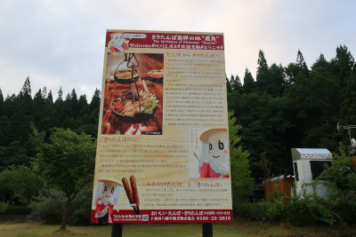 きりたんぽの看板。きりたんぽといえば秋田県の名物だが、このサービスエリアは岩手県ではなく秋田県鹿角市らしい。