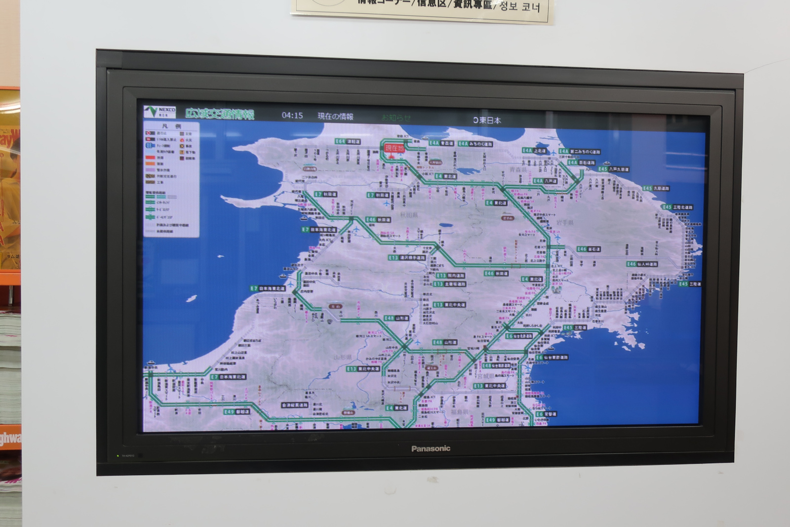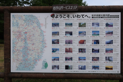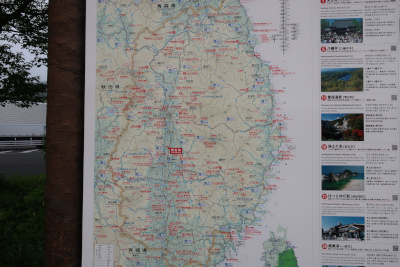 地図で見ると岩手県の縦長さがわかる。紫波サービスエリアで大体岩手県の半分ぐらい。県内を超えるにはもう1つサービスエリアに寄らないといけないようだ。 |