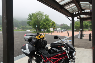 紫波サービスエリアを走り出してしばらくすると雨がパラついてきたが、合羽を来ていたおかげで大した影響を受けないまま長者原サービスエリアに到着。 |