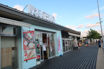 福島県を抜けて栃木県に入り、最初の那須高原サービスエリアに到着。東京に近づくたびにクルマが増えているのを実感する。 |