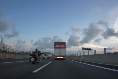 料金所を越えて下道へ。下道もストップアンドゴーの繰り返しで距離が稼げない。北海道を走っている頃が懐かしいよ。 |