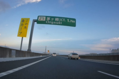 渋滞を抜けて茅ヶ崎ジャンクションの表示が出てきた。青森からずっと高速道路を走り続けてきたが、もう少しで下車できそうだ。 |