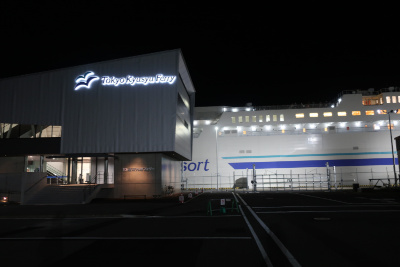 カレーを食べた後に外のベンチに座ってゆっくりしていたら新門司からフェリーが到着した。現在時刻は20:45。このパターンは新日本海フェリーの舞鶴~小樽と同じだ。