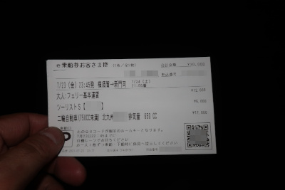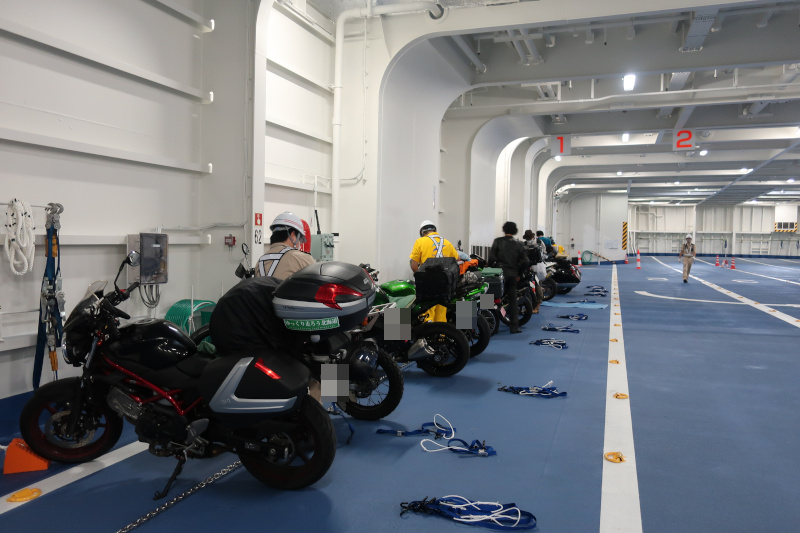 そして23時を過ぎて乗船。バイクが少ないので相当スムーズだ。すべてを新日本海フェリーと比べてしまう。 |