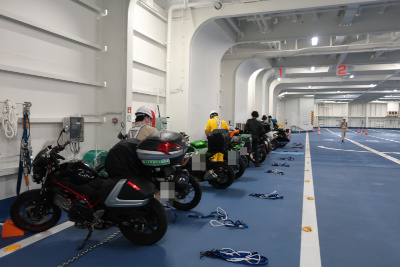 この東京九州フェリーは新日本海フェリーと同じ系列。船の仕様もほぼ同等で時速50km/h以上で移動できる優れものだ。 |