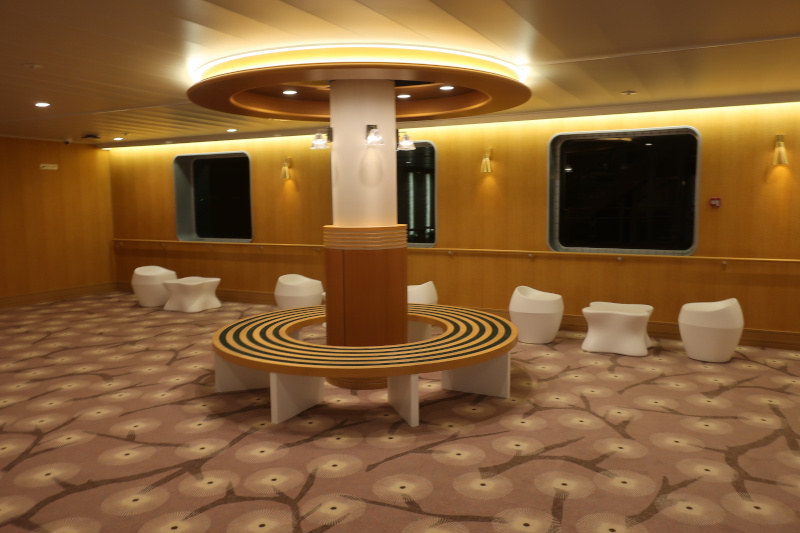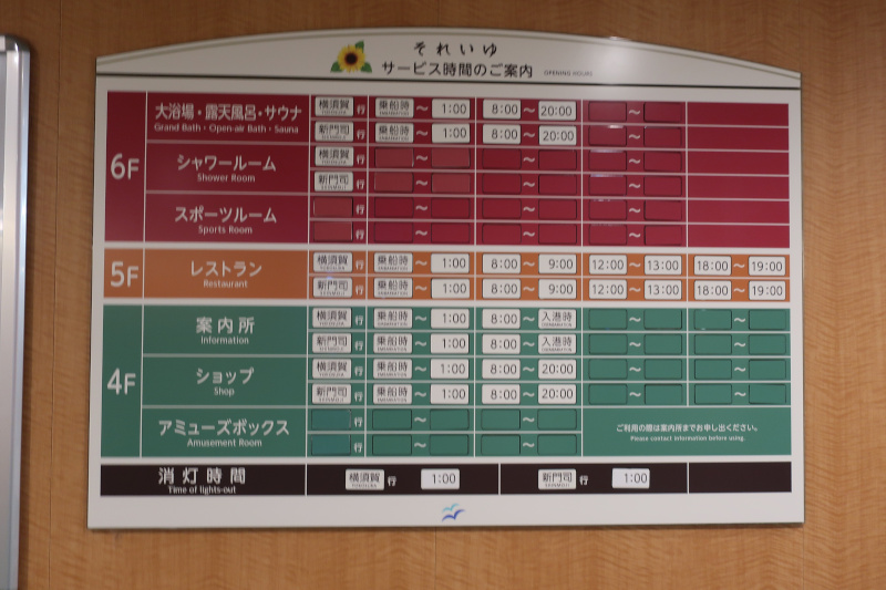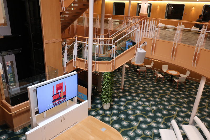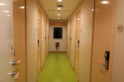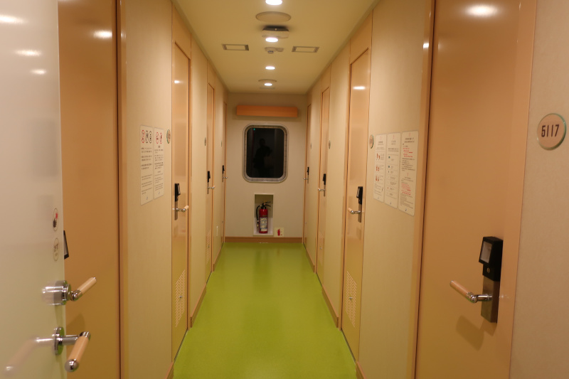 車両甲板から船内に入って色々と探索してみる。基本的な造りは新日本海フェリーを踏襲しているが、船が新しいだけあってすべてが綺麗。この船であれば新門司まで快適に過ごせそうだ。 |