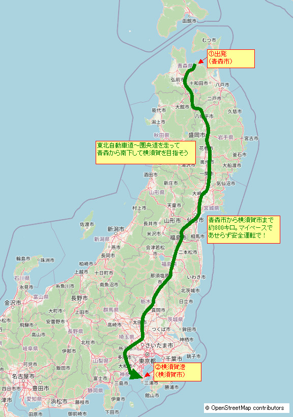 今日は青森から北九州行きのフェリーが出ている横須賀まで移動する。青森から横須賀まで約800キロ、横須賀から北九州行きのフェリーの出航時間は23時50分。