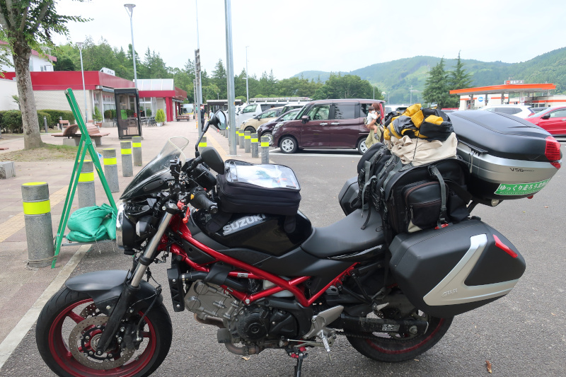 遠目から「北海道の帰りですか?」と声を掛けられる。この辺りで荷物を積んだバイクがいると北海道帰りに見えても不思議ではない。 |