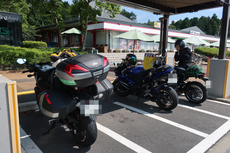 ほぼ1時間ペースになっているが佐野サービスエリアに到着。首都圏に入ったせいかバイクを停めるのも一苦労。 |