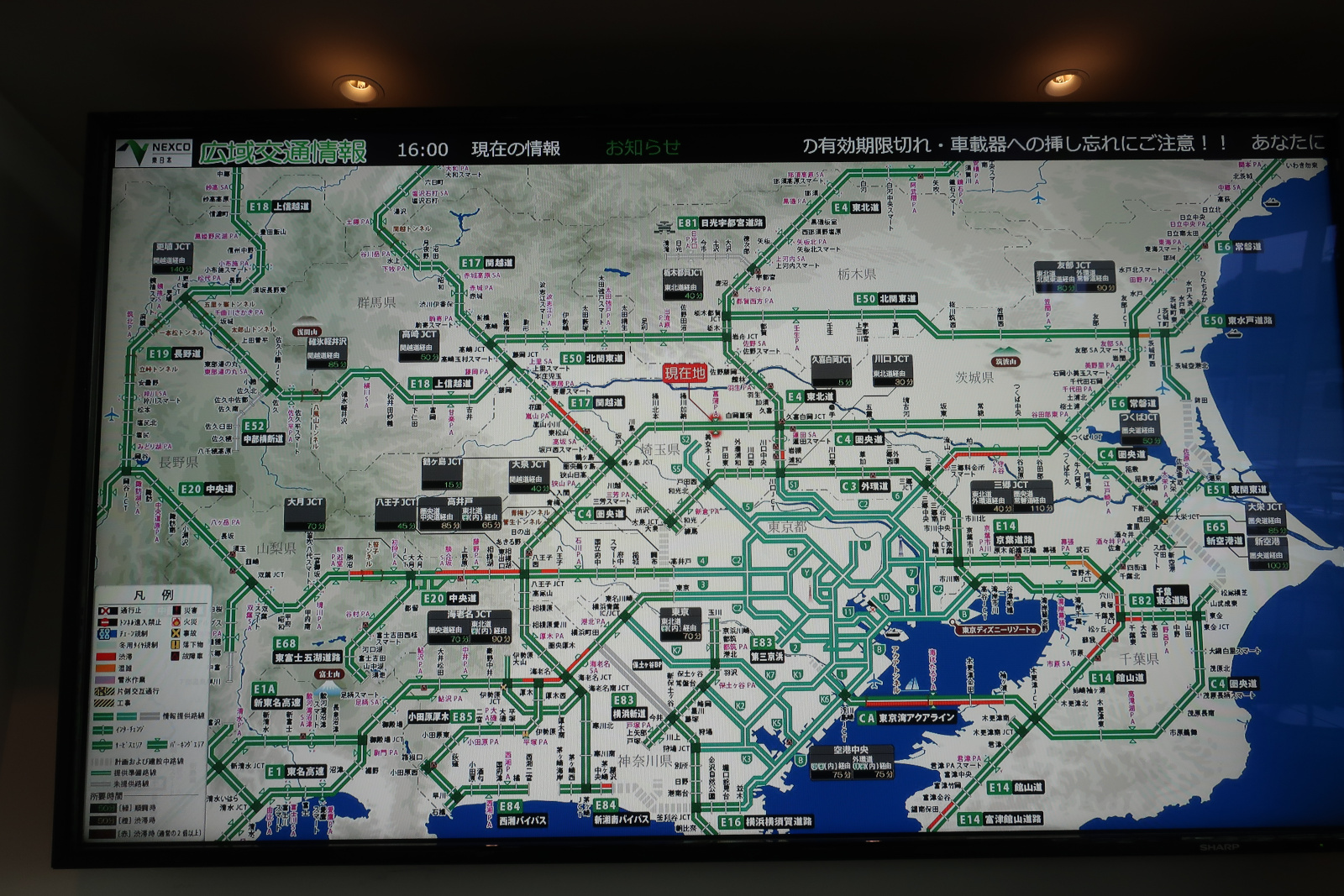 そして首都圏の交通情報が出てきた。現在のところ目立った渋滞は発生していないようだ。 |
