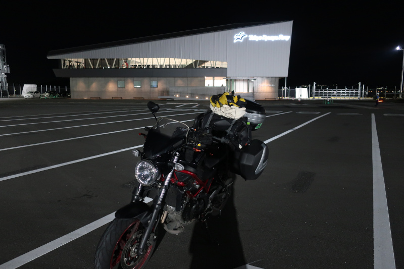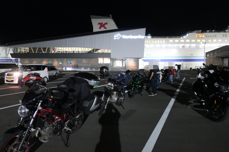 22時半前になってようやくバイクが集まってきた。とはいってもバイクは12~13台ぐらい。舞鶴~小樽間と比べると非常に少ない。首都圏とは思えない。 |