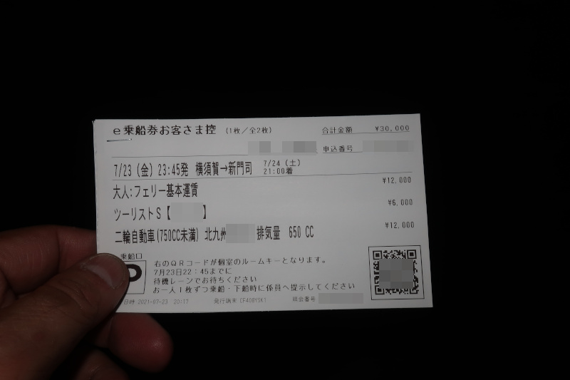 今日の乗船チケット。部屋はツーリストSにしたが、この仕組みも新日本海フェリーと同様。ただし、舞鶴便と違ってツーリストSはカギ付きらしい。 |