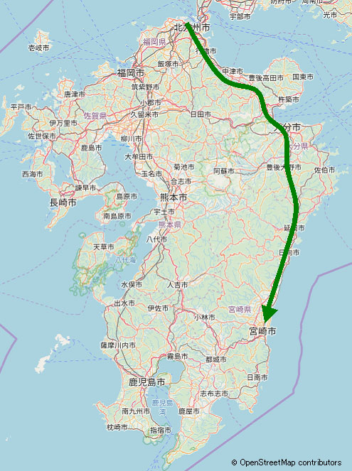 今日は宮崎から延岡まで上ったあとは、高千穂、阿蘇、小国、日田、