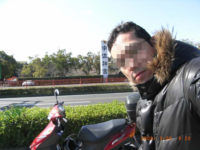 途中、お!有名な宇佐神宮やん、と思い、歩道にアドレスを停めて写真撮影。