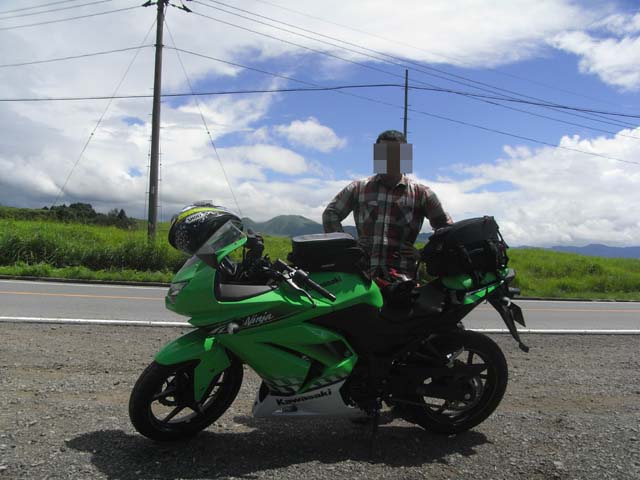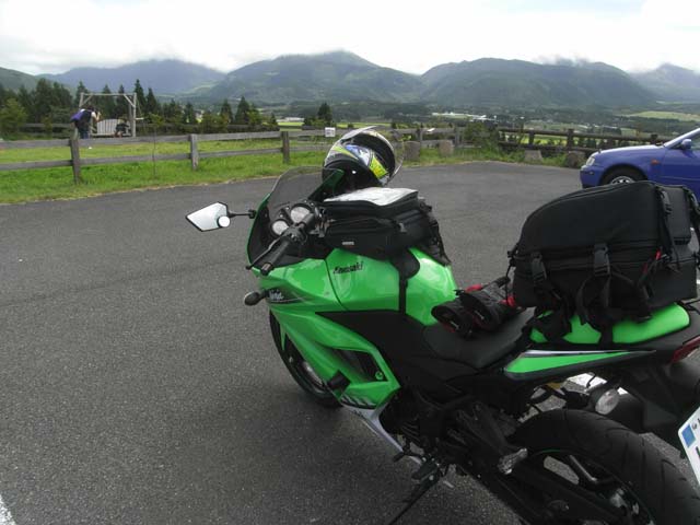 Ninjaの緑と山の緑。Ninjaが本当に映えます。バイクに乗っていて感じる至福の時です。世の中にバイクより楽しいことがあるだろうか、と考えながら走っているとあっという間にやまなみハイウェイを越えてしまいました。走りが楽しすぎて写真を撮るのを忘れてしまった!(残念)