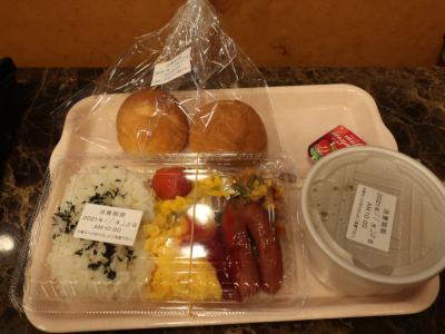 東横イン新八代駅前の朝食。コロナウイルス防止対策の為にこのまま部屋に持って行くことができる弁当方式。ないよりマシといったレベルだが、昨日のカレーと合わせて4750円だから文句はいえない。いつも泊まるAZホテルと比べるとクオリティに差はないが、AZホテルはバイキング形式なので東横インよりは若干上といったところ。 |
