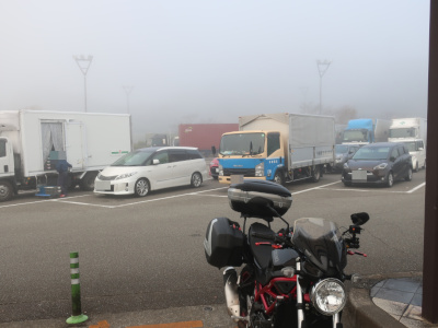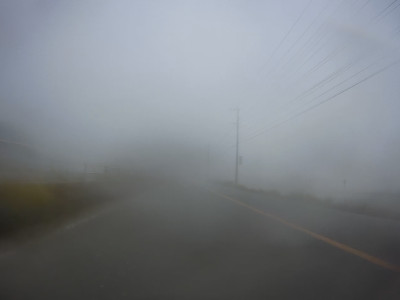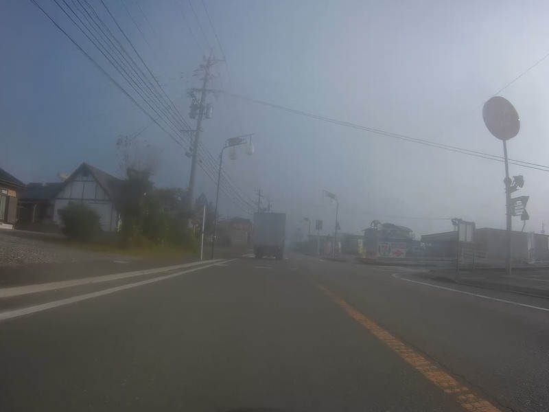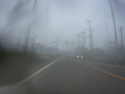 下道になったが霧がますます酷くなってきた。運転にも支障が出るレベル。 |
