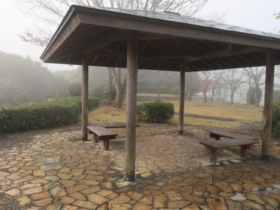 少し外れた場所にある休憩場所。屋根と椅子があれば寝袋1つで宿泊できる。
