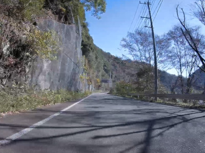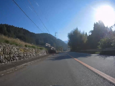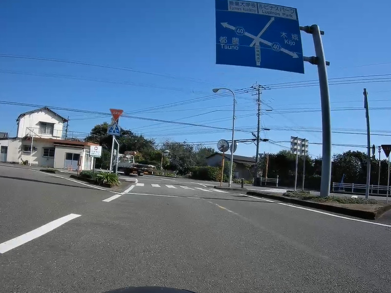 田舎道から山道、民家と抜けてきて県道40号へ。この辺りがどこなのかよくわからないままナビに誘導されて進む。 |