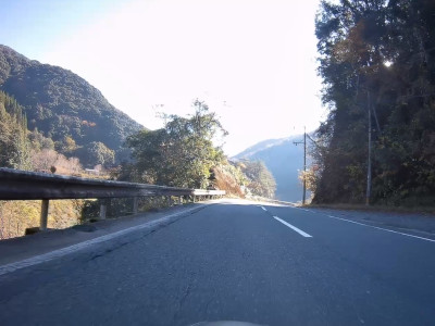 ようやく渋滞を抜けて進み始めた。そのうちに国道388号との分岐が出てきたが、国道388号は諸塚村を経由する道だったと記憶する。(11年前に走っていた) |