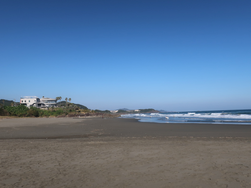 海が気持ち良さそうなので道の駅の少し先にある砂浜へ来てみた。11月下旬なのにサーフィンをしている人が大勢。そういや、去年行った湘南も11月なのにサーフィンをしている人がいたが、サーフィンってこんな時期でも出来るのか。(調べてみると実は秋がベストシーズンらしい。最近は温暖化の影響で海水温も上がっているので尚更、秋がいいらしい) |