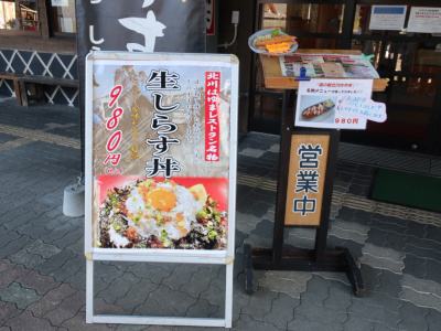 そしてなぜか「生しらす丼」が。何となく山の印象が強い北川でなぜ生しらす? |