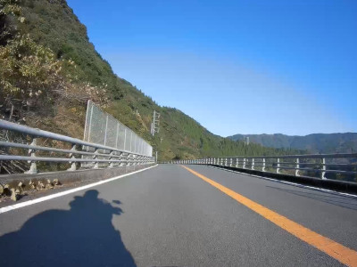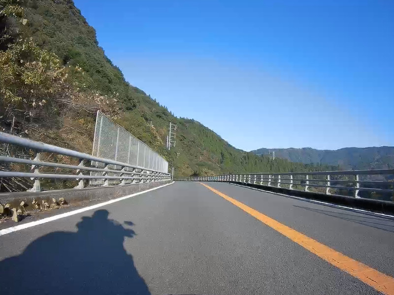 九州山地の山深さを感じながら走る。同じ九州でも阿蘇の明るい景色と違って深い山中を走るので展望は開けないがツーリングとしては素晴らしい道。本当に九州の秘境という感じがする。 |