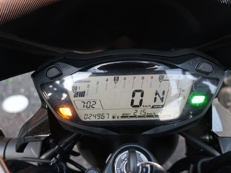 7時になり出発の支度が整った。何気にオドメーターを確認すると2万5千キロ弱。来年2月で丸3年になるが、これを多いと感じるか少ないと感じるかは評価が分かれるところ。現状だと不測の事態が発生しない限り、10万キロは乗り続ける気がする。ちなみに先代のNinja250Rは4万7千キロ走った。 |