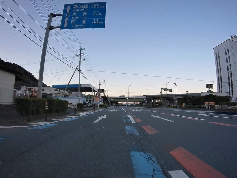 国道3号に入ると鹿児島市の案内が出てきた。鹿児島市は八代市からでも相当遠い。(新八代駅から鹿児島中央駅だと45分) |