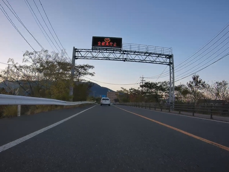 国道219号に入ってすぐに「全面通行止め」の掲示板が出てきた。どういうことだ? |