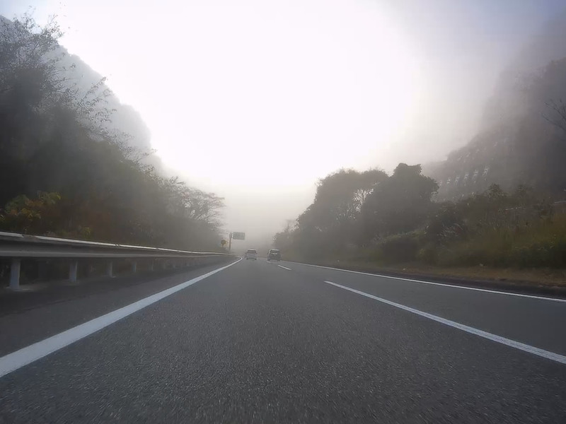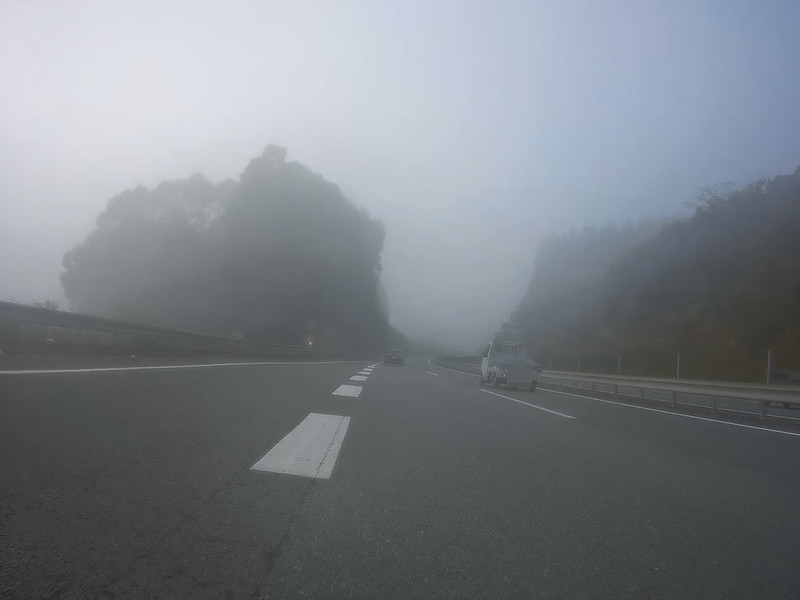 小休止した後、再び山江SAを出発するが霧が晴れない。 |