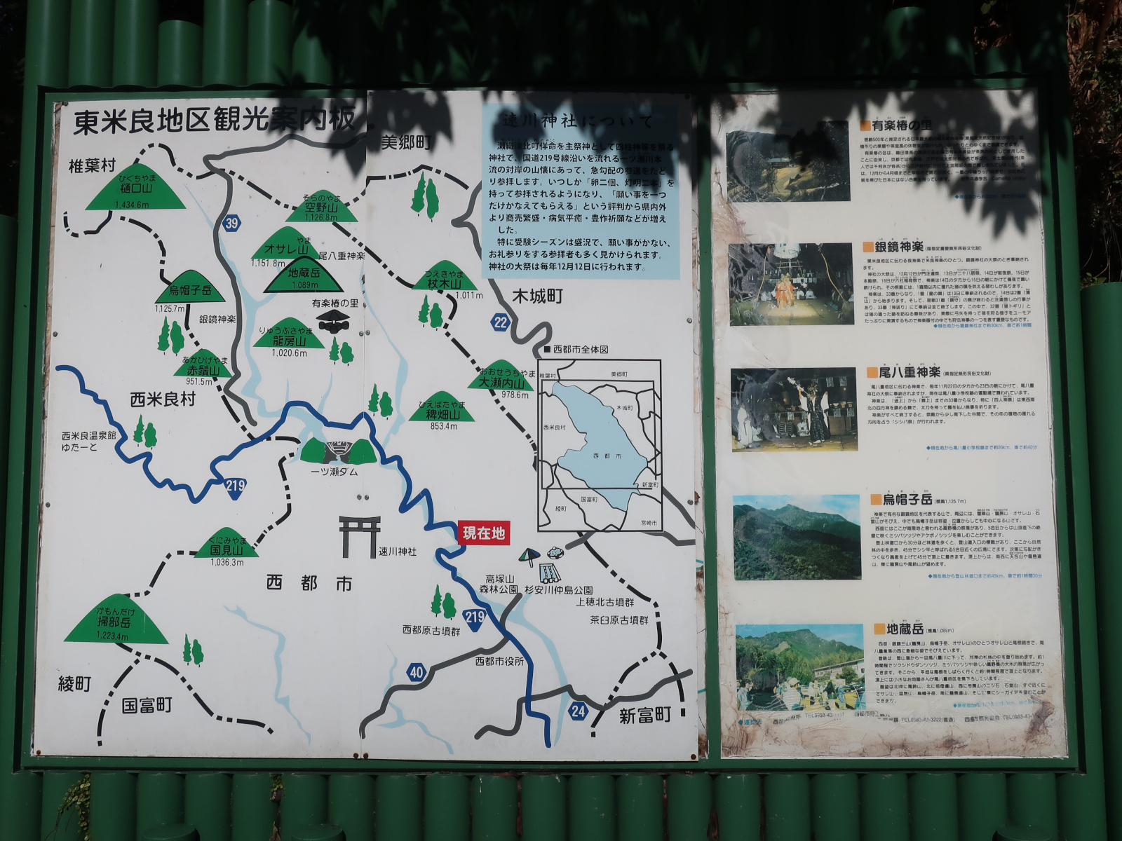 西米良村の観光案内地図。宿泊場所が意外と多い。 |