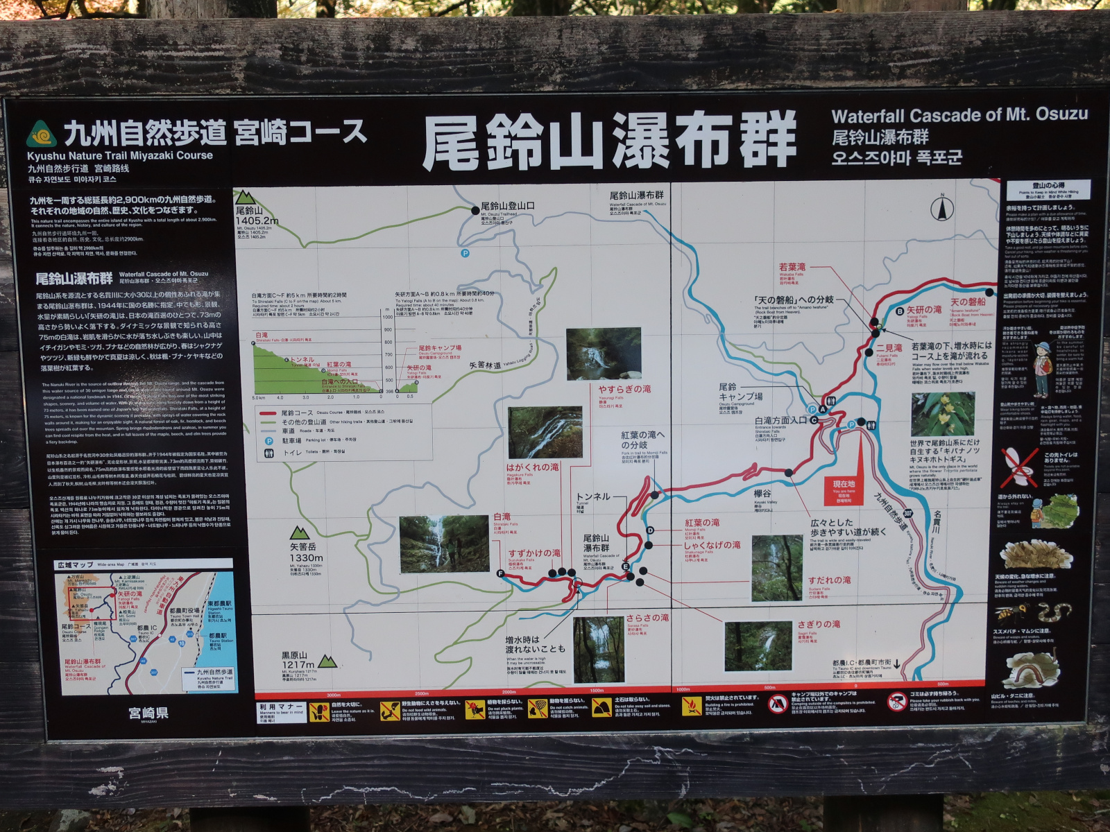 しばらく走ると尾鈴山の案内板が出てきた。12時を過ぎたところだが、若干時間に余裕があるので少し寄り道して尾鈴山に進んでいこう。 |