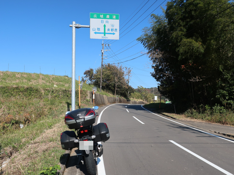 広域農道、尾鈴サンロードを走る。クルマはほとんどいなくて信号も少ないので西都から日向まで快走できる。ただし沿線沿いは商店が一切ないので休憩できる場所はない。国道10号だと休憩場所は多数あるが、ストップ&ゴーの繰り返しで先に進まないので、国道10号と併用して使用するのがベターだと思う。 |