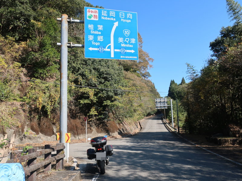 さらに宮崎の自然を堪能していこう。程なくして国道219号と県道の分岐が出てきたが、直進して県道方面へ。 |