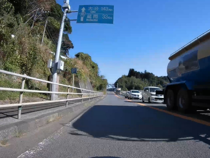 この道路、国道10号だけあって道は綺麗だがクルマがほとんどいない。これは東九州自動車道の延岡IC~佐伯IC間が無料区間だからだろう。 |