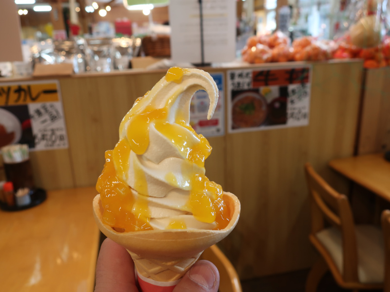 ということで本日のソフトクリームはマンゴー味。味は・・・美味い!マンゴーの果肉がとても美味。
